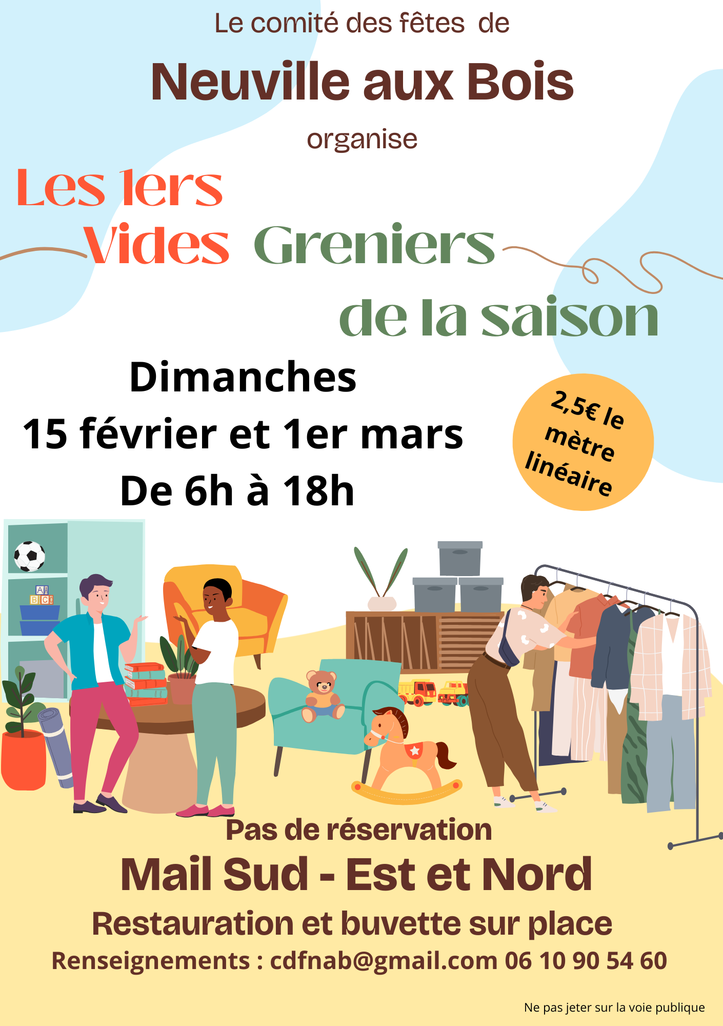 Les 1ers vide-greniers du Comité des fêtes seront organisés les : dimanche 1er mars De 6h à 18h Mail Sud - Est...
